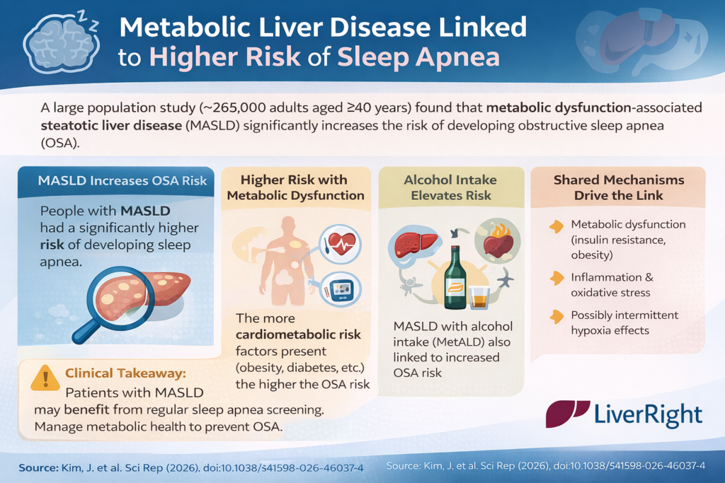 Here we summarize “Association between metabolic dysfunction-associated steatotic liver disease and obstructive sleep apnea: a nationwide retrospective cohort study” from Scientific Reports (Nature Portfolio), March 2026.